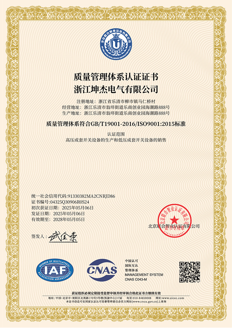 质量管理体系认证证书
